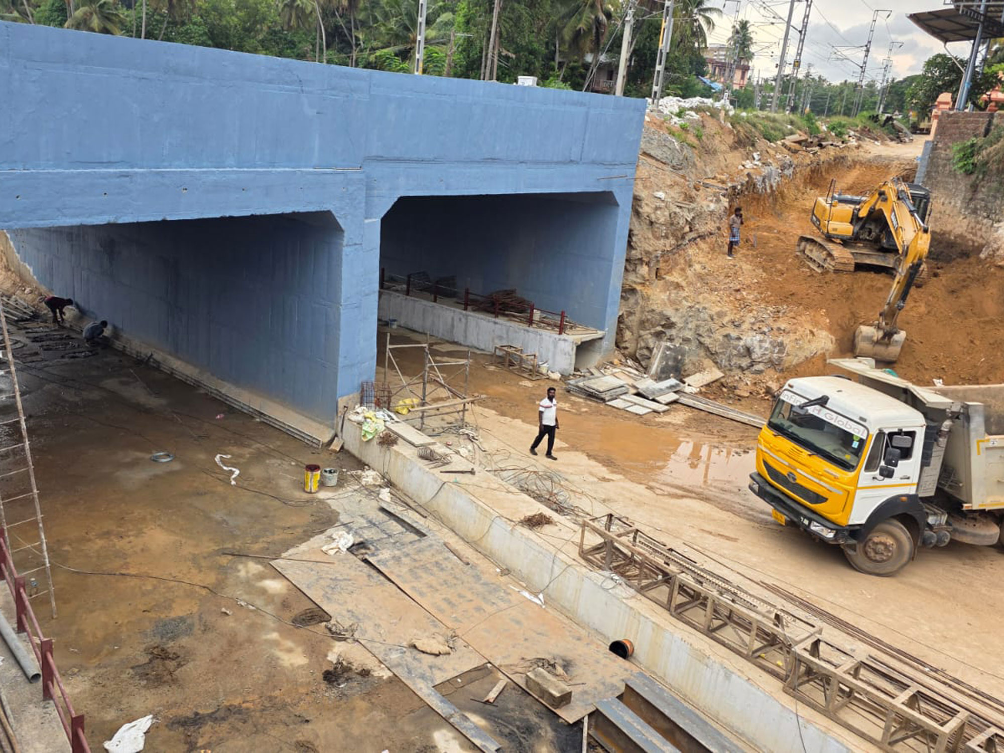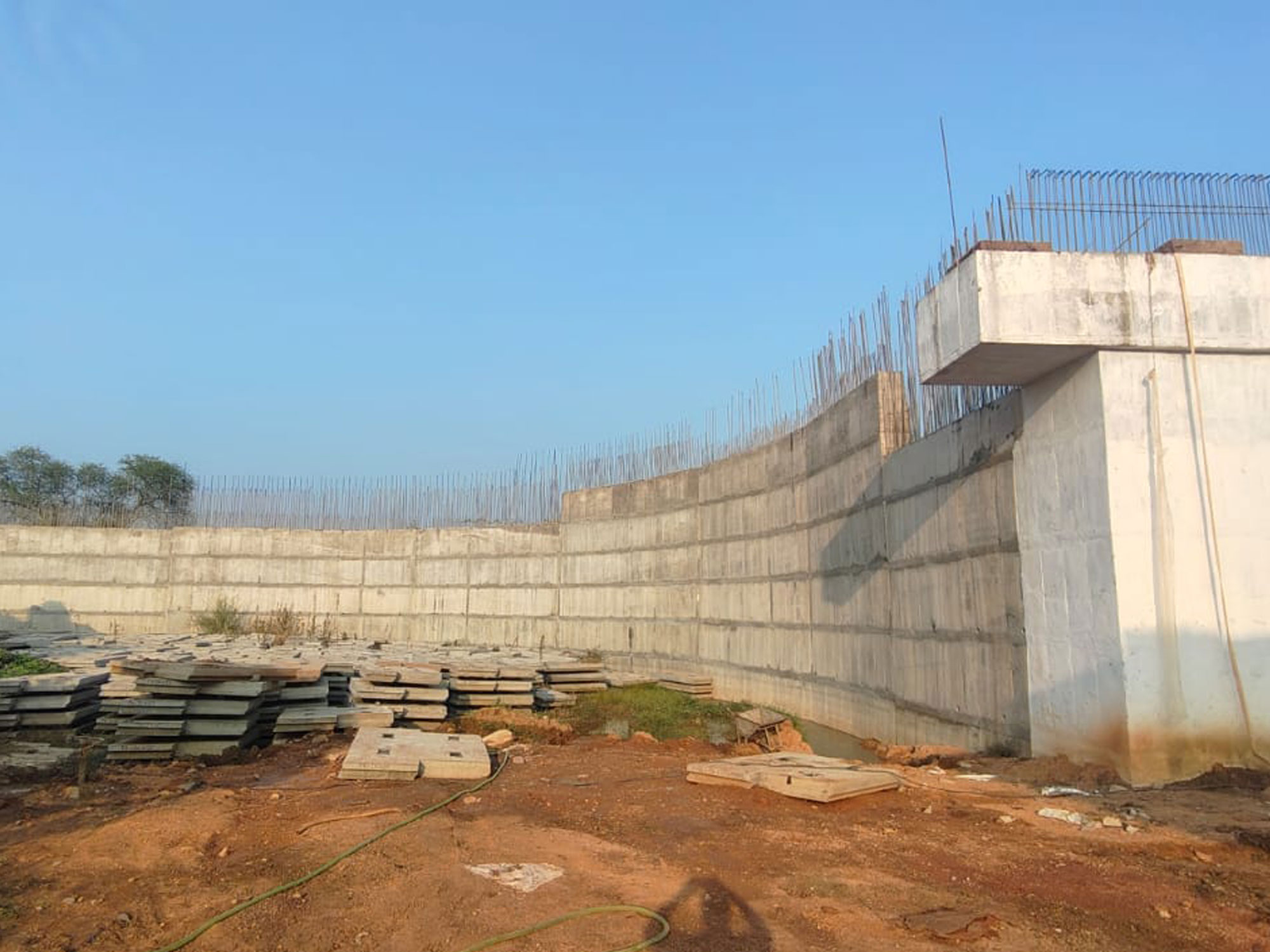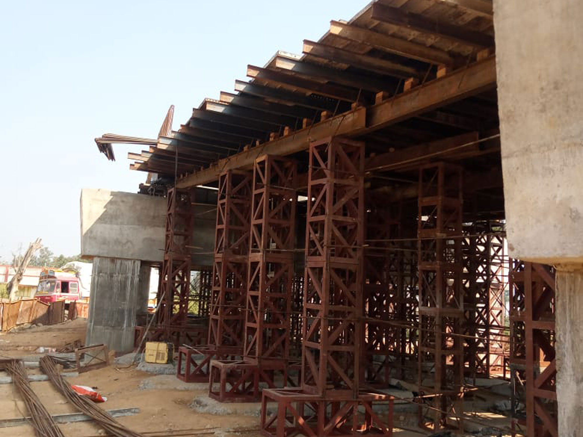 The thrust beds of required size and designed thickness were cast with M25 concrete. Pin pockets of 0.5m x 0.5m x 0.6m size are provided at suitable spacing for jacking arrangements.